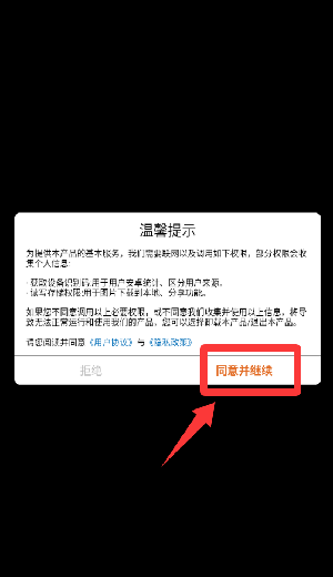 1、點(diǎn)擊溫馨提示里的同意并繼續(xù)。